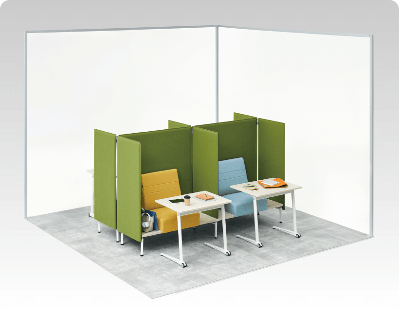 [ライブス コラボレーションソファ]- 共用の休憩室に半個室のプライベート空間を創り出す、ソロタイプのソファ。レイアウトや使い方に合わせて動かすことができるキャスタータイプもご用意しています。