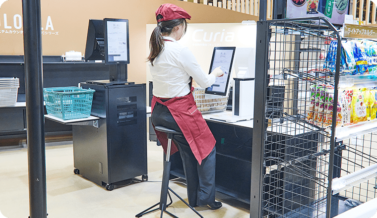 - レジチェアの導入で、長時間に渡る接客業務の負担を軽減